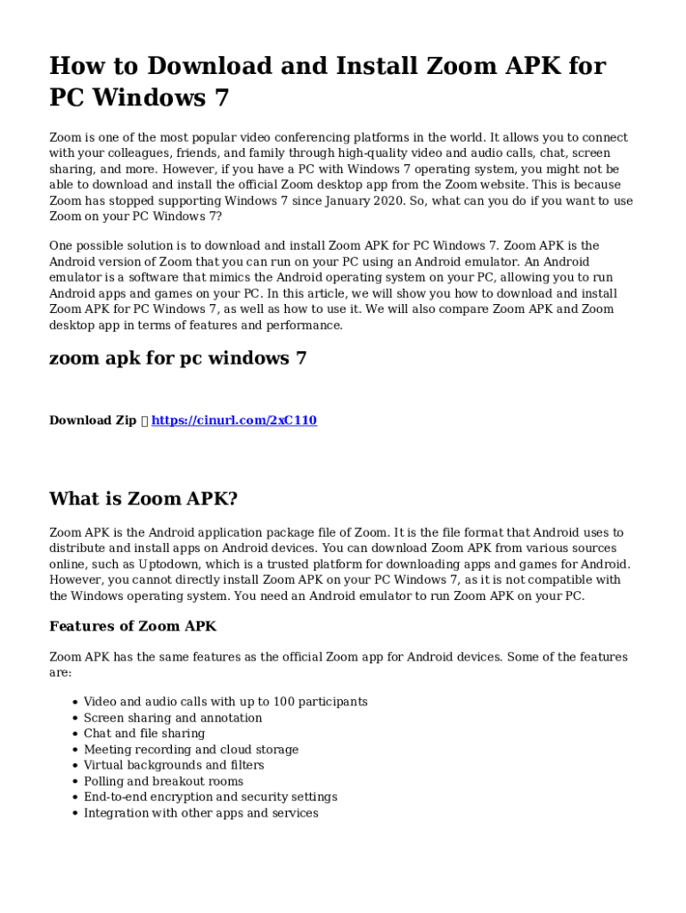 How to Download and Install Zoom APK for PC Windows 7 Zoom is one of the most popular video conferencing platforms in the world. It allows you to connect with your colleagues, friends, and family