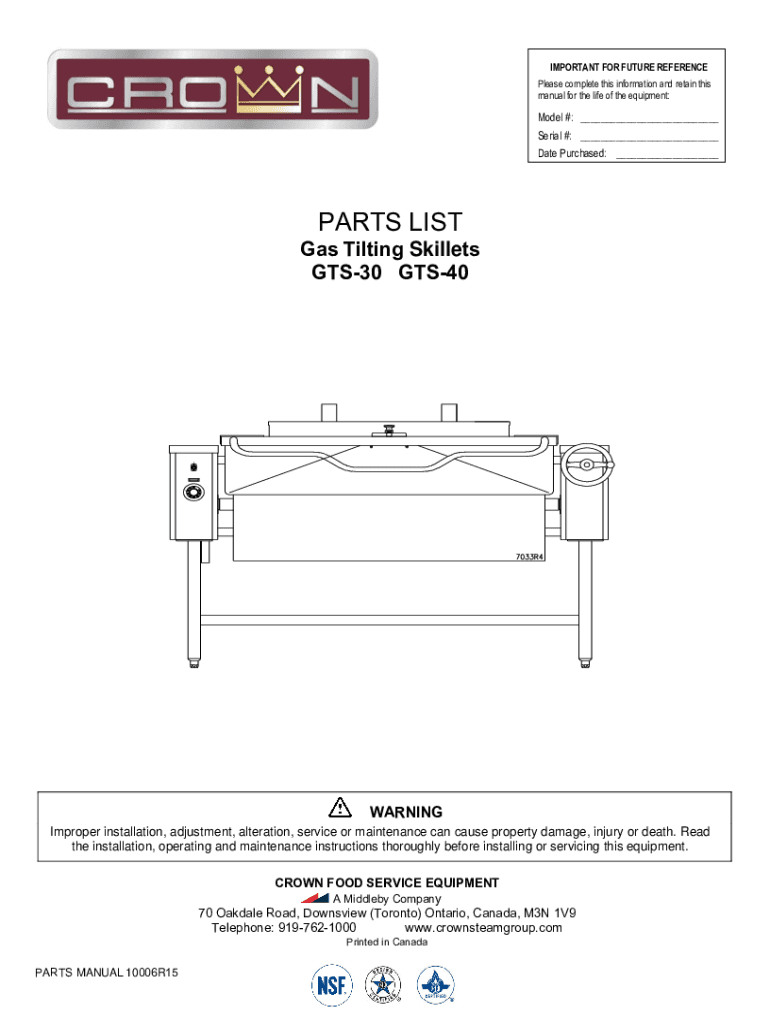 Date Purchased: ___PARTS Lists Tilting Skillets