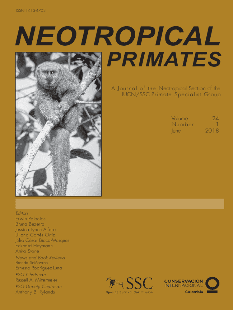 ISSN 14134703NEOTROPICALPRIMATES A J o u r n a l o f t h e Neotropical Section of the IUCN/SSC Primate Specialist GroupVolume 24 Number1 June2018Editors Erwin Palacios Bruna Bezerra Jessica Lynch