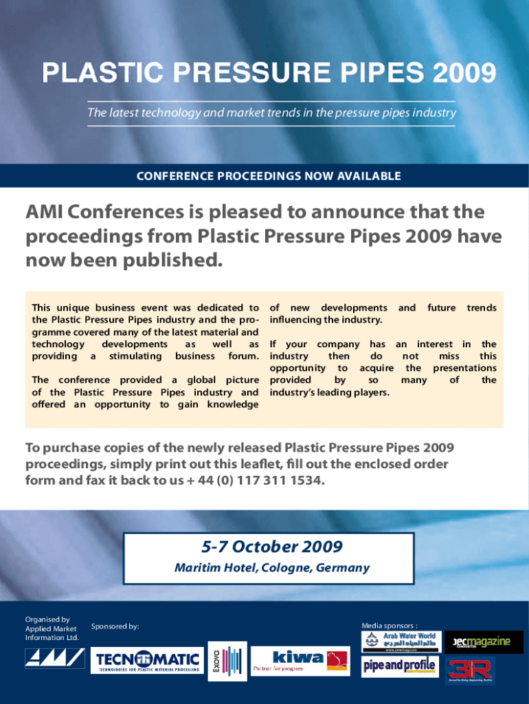 The latest technology and market trends in the pressure pipes industryCONFERENCE PROCEEDINGS NOW AVAILABLE Conferences is pleased to announce that the