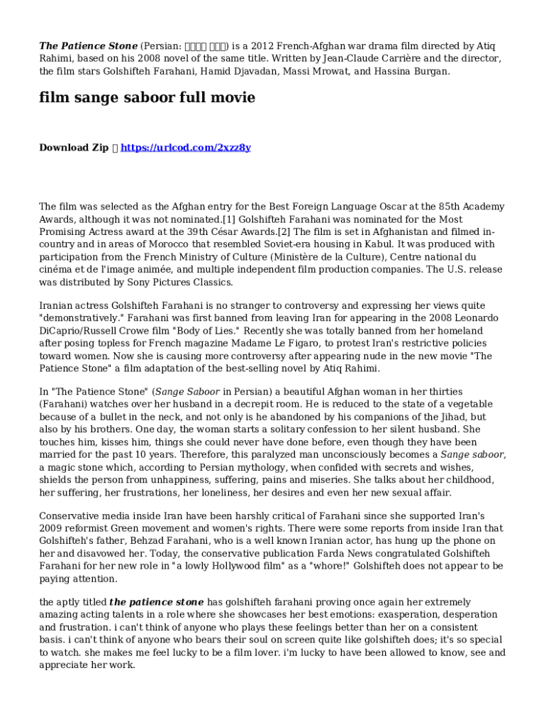 The Patience Stone (Persian: ) is a 2012 French Afghan war drama film directed by AIQ