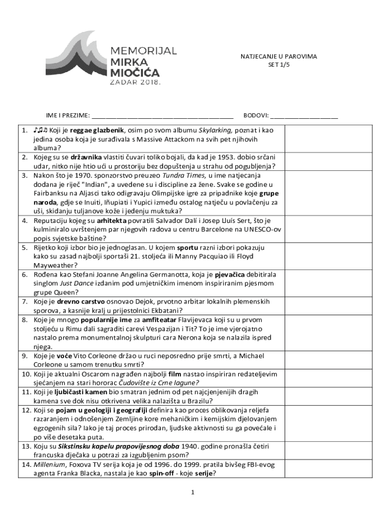 Fill out your natjecanje u parovima set online with pdfFiller!