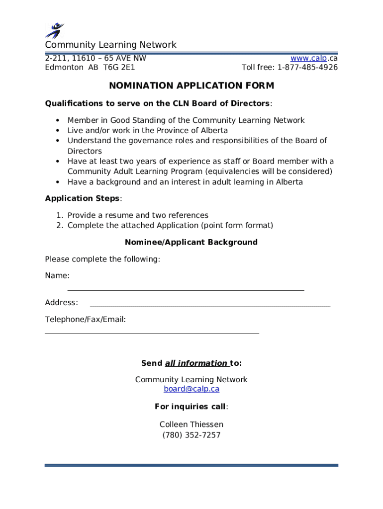 NOMINATION APPLICATION - CALP word template: frequently asked questions