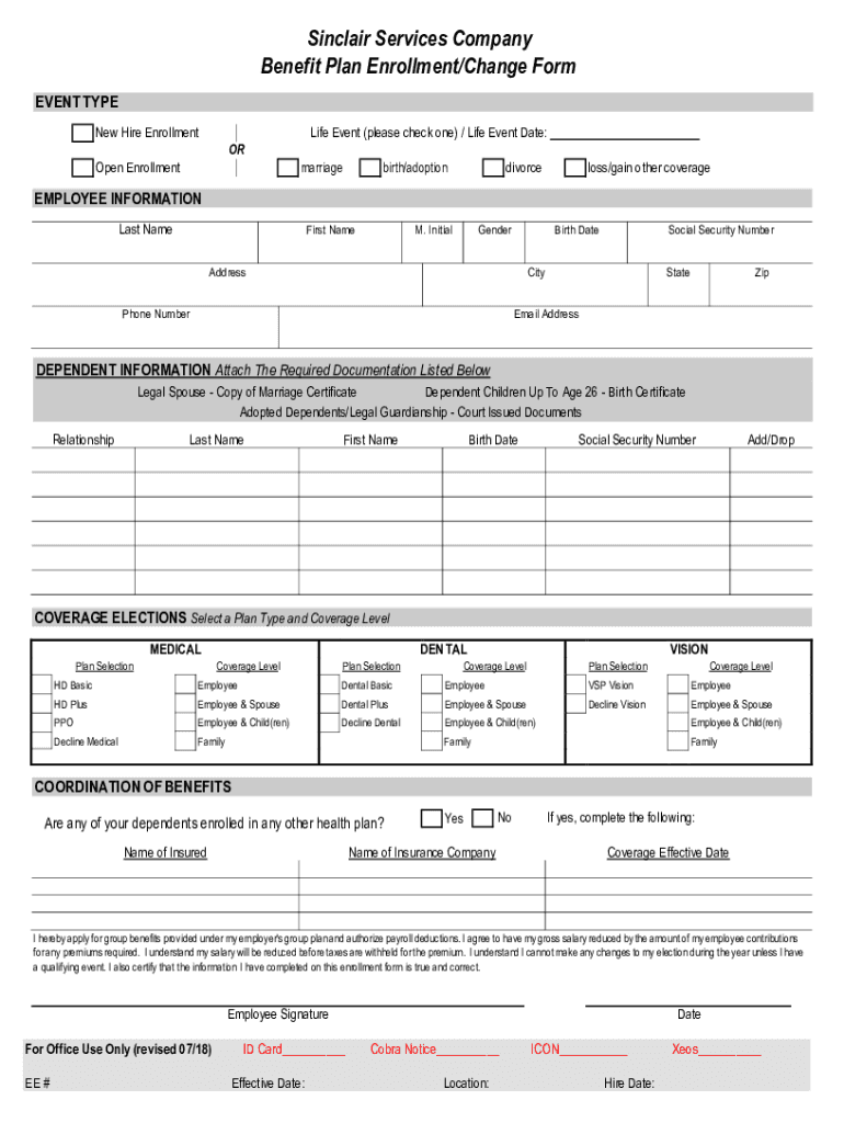 Open Enrollmentmarriagebirth/adoptiondivorceloss/gain other