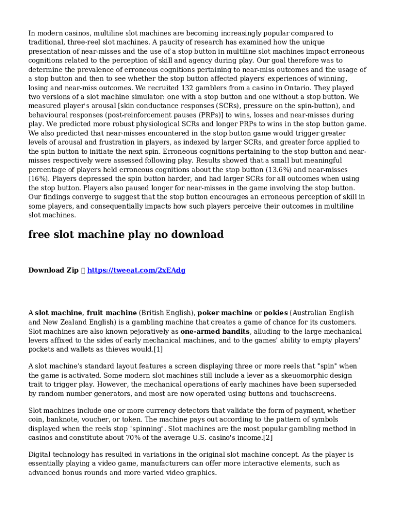 In modern casinos, multiline slot machines are becoming increasingly popular compared to traditional, three reel slot machines. A paucity of research has examined how the unique presentation of near