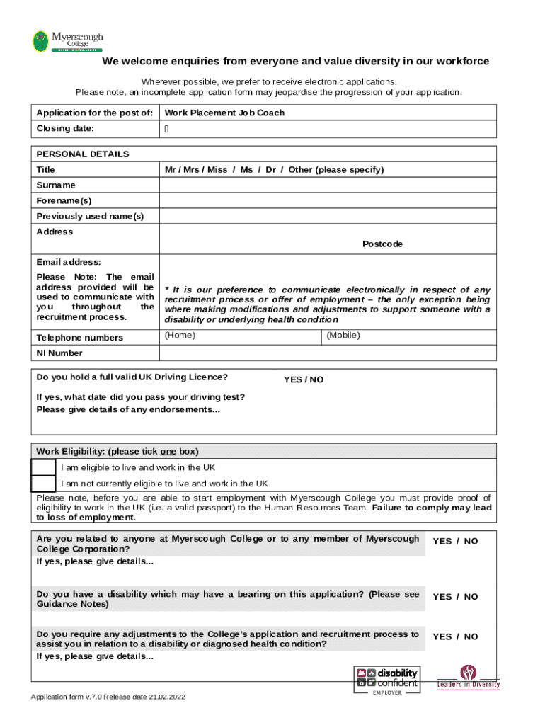 Instructions for the Application Safeguarding & Support Officer 22.02.2024 form
