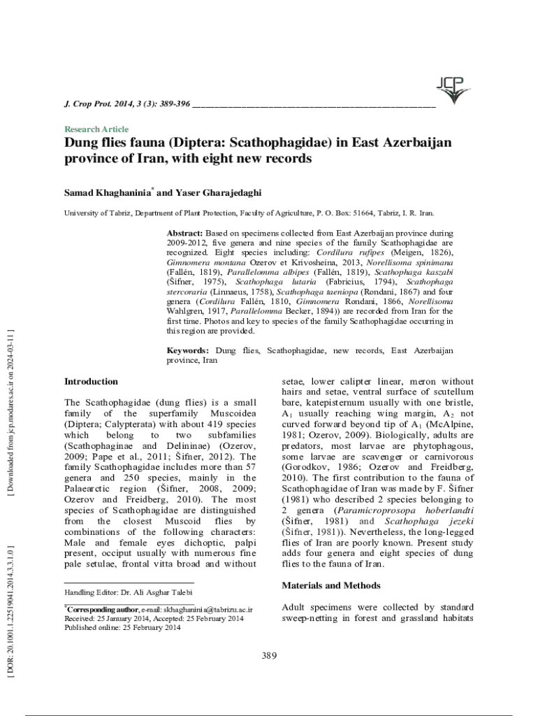 Get the free New records of dung flies (Diptera: Scathophagidae) from ... - jcp modares ac