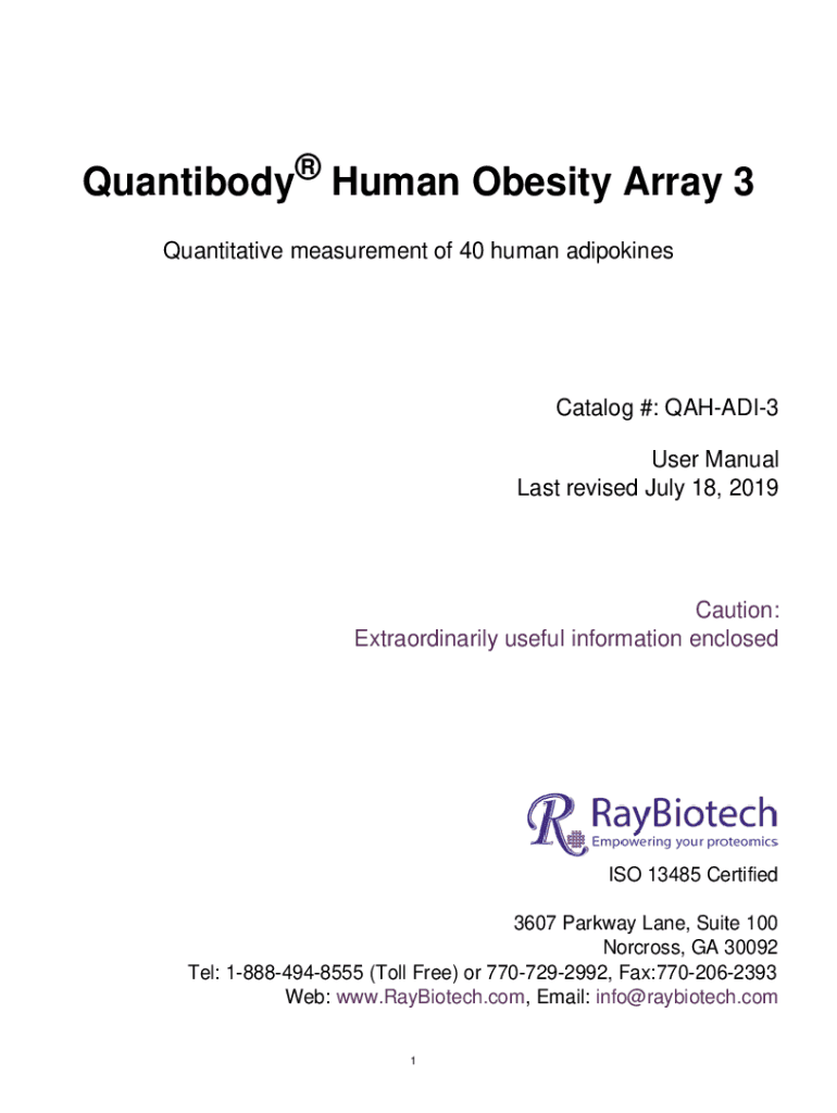 Get the free Raybiotech Inc Quantibody Human Obesity Array 3 Kit. ...