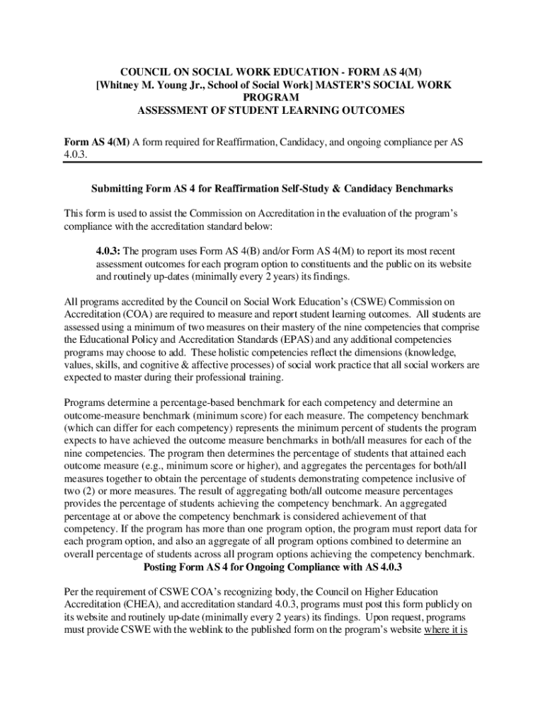 COUNCIL ON SOCIAL WORK EDUCATION FORM AS 4(M)