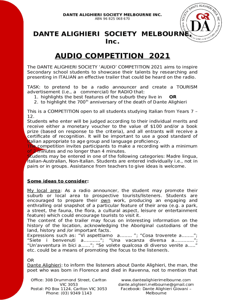 Frequently asked questions about the form Audio Competition - Dante Alighieri Society Melbourne