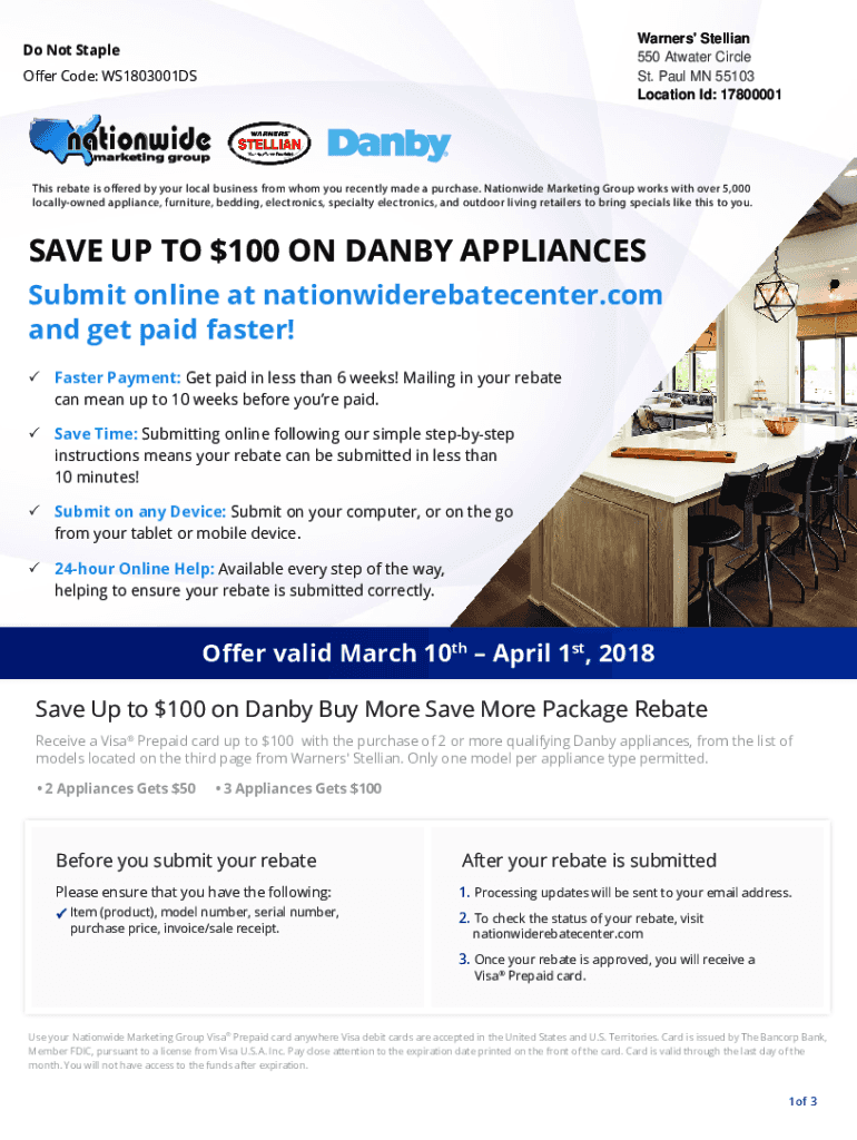 Get the free NationwideWarner's Stellian Danby Buy More Save More Package RebateMarch-April2018WS...