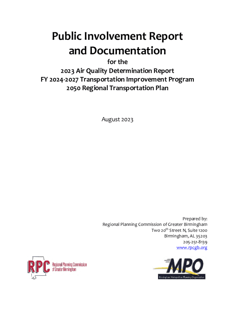 Public Involvement Report and Documentationfor the 2023 Air Quality Determination Report FY 20242027 Transportation Improvement Program 2050 Regional Transportation PlanAugust 2023Prepared by: Regional