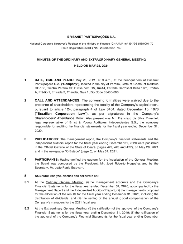 BRISANET PARTICIPAES S.A. National Corporate Taxpayers Register of the Ministry of Finance (CNPJ/MF) n 19.796.586/000170 State Registration (NIRE) No: 23.300.045.742MINUTES OF THE ORDINARY AND EXTRAORDINARY
