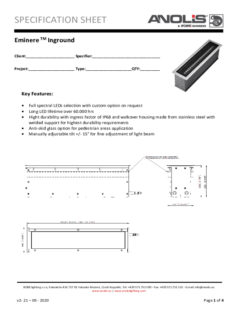 SPECIFICATION SHEET Eminere TM Inground Client:___ Specifier:___ Project:___ Type:___QTY:___Key Features: Full spectral LEDs selection with custom option on request Long LED lifetime over 60.000 hrs