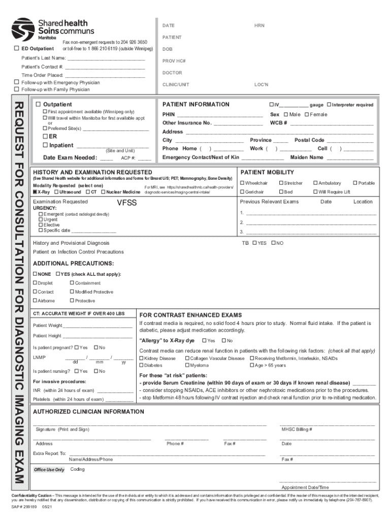 DATEED OutpatientFax nonemergent requests to 204 926 3650 or tollfree to 1 866 210 6119 (outside Winnipeg)Patients Last Name: Patients Contact #: Time Order Placed: Followup with Emergency Physician