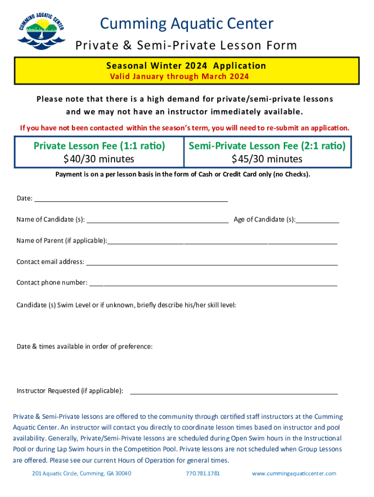 Get the free Private/Semi-Private Lesson Request Form