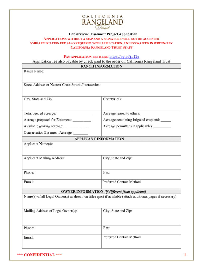 Submit the completed application to the appropriate organization or agency responsible for reviewing conservation easement projects.