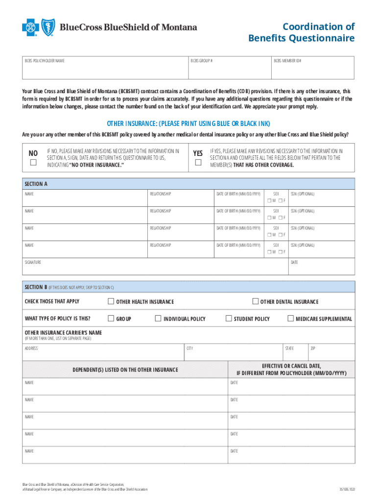 BCBS POLICYHOLDER NAMES GROUP #BCBS MEMBER ID#Your Blue Cross and Blue Shield of Montana (BCB SMT) contract contains a Coordination of Benefits (COB) provision.