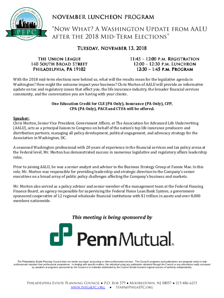 NOVEMBER LUNCHEON Program What? A Washington Update from AAU