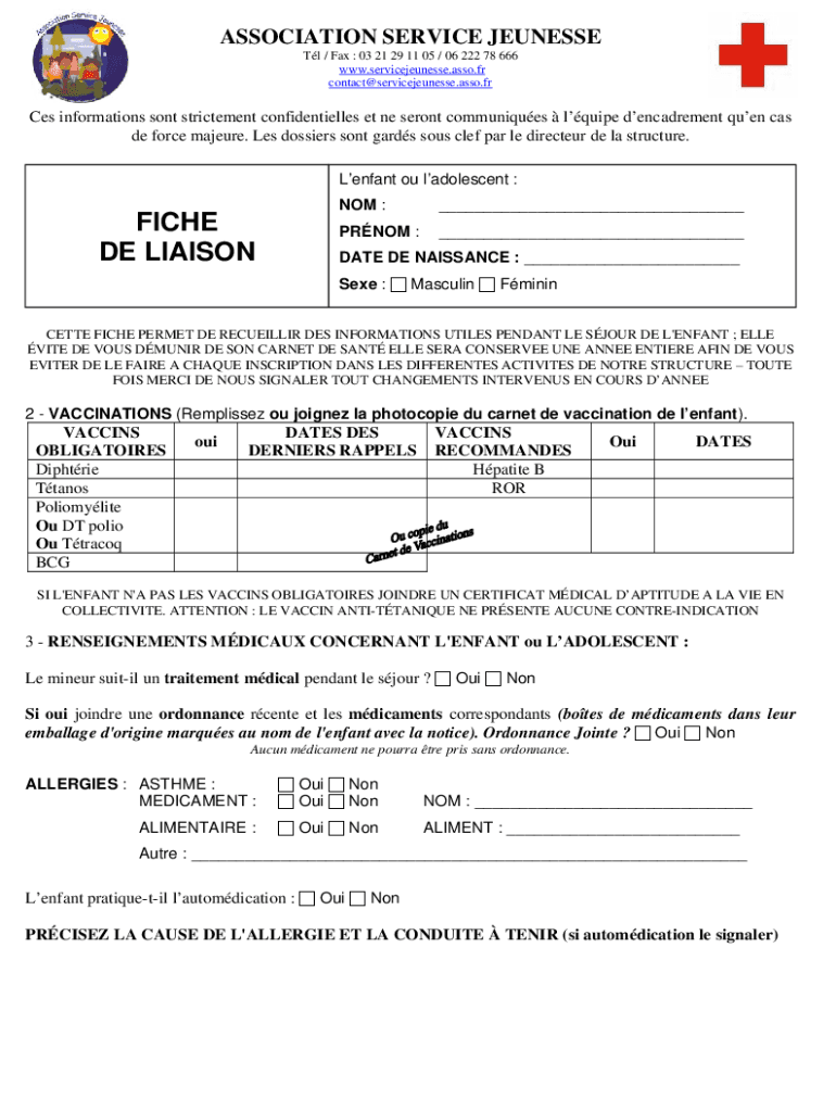 ASSOCIATION SERVICE JEUNESSE Tl / Fax : 03 21 29 11 05 / 06 222 78 666 www.servicejeunesse.asso.fr contact@servicejeunesse.asso.frCes informations sont strictement confidentielles et ne seront communiques