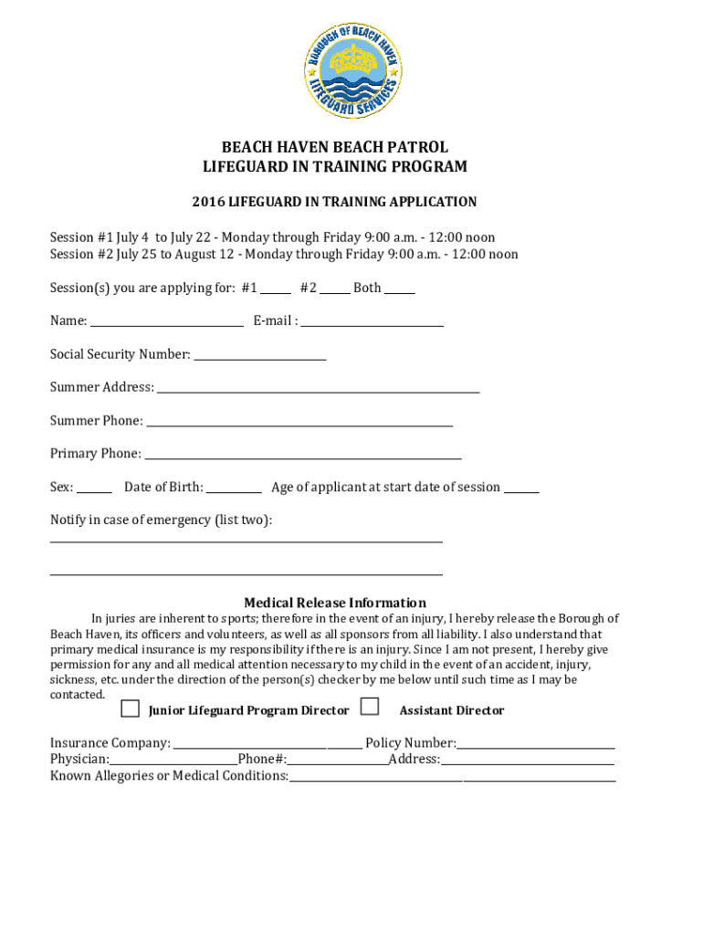 Get the free BEACH HAVEN BEACH PATROL LIFEGUARD IN TRAINING ...