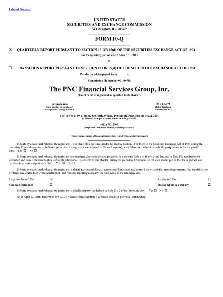 Get the free 10-Q - 05/04/2016 - The PNC Financial Services Group, Inc.
