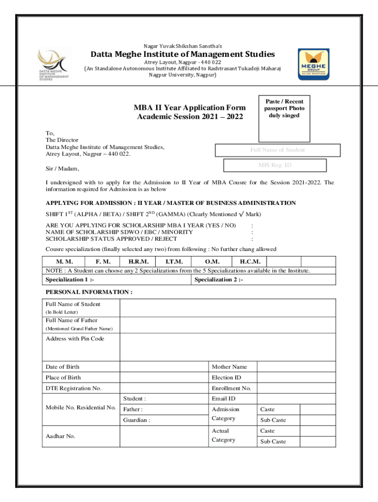 Nagar Yuvak Shikshan SansthasDatta Meghe Institute of Management StudiesAtrey Layout, Nagpur 440 022 (An Standalone Autonomous Institute Affiliated to Rashtrasant Tukadoji Maharaj Nagpur University,