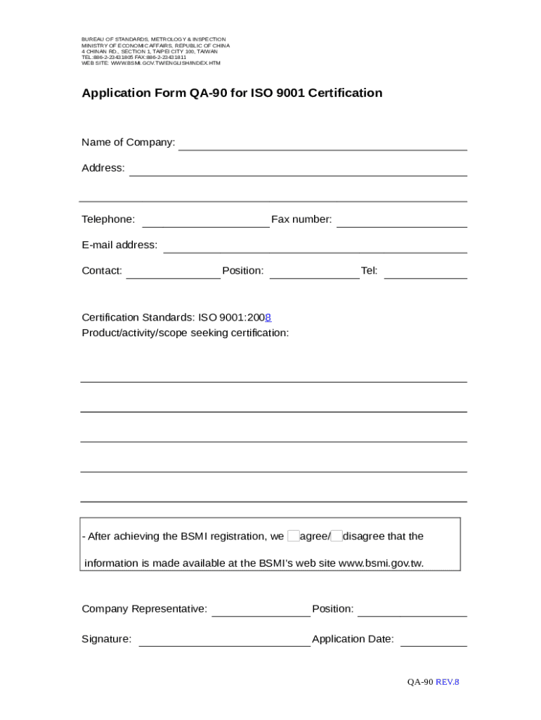 How to fill out Application QA-90 for ISO 9001 Certification. Application QA-90 for ISO 9001 Certification