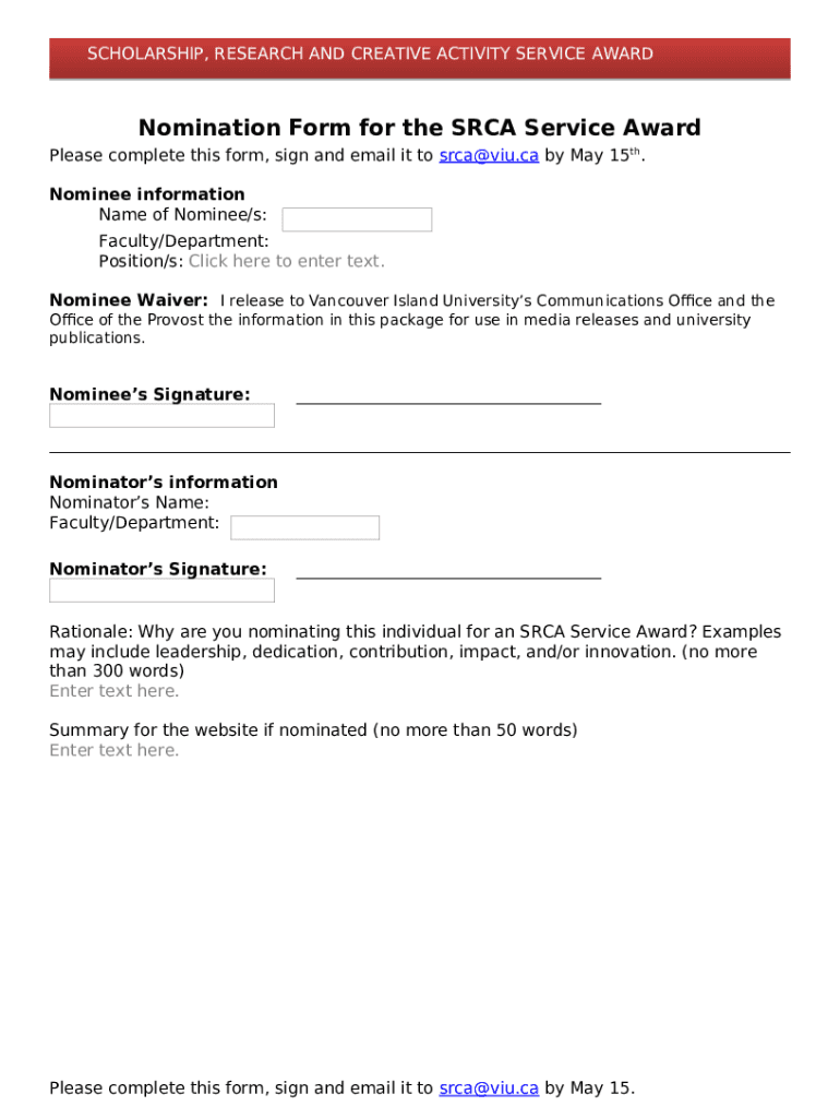 Nomination for the SRCA Service Award word template: frequently asked questions