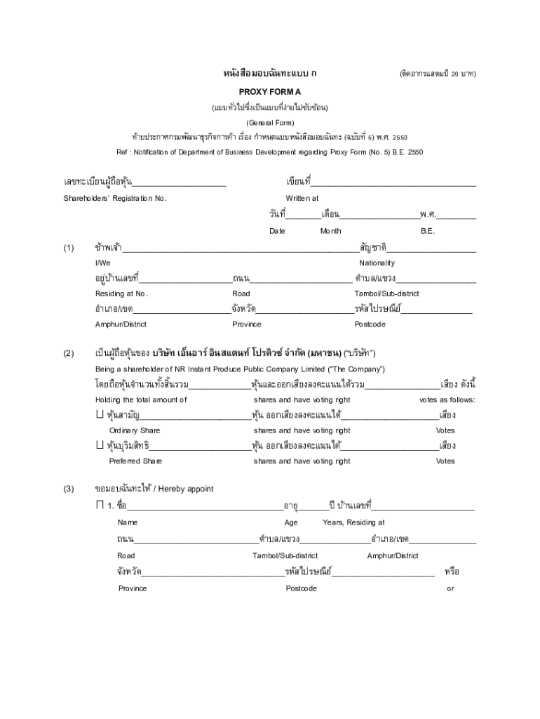 PROXY FORM A( 20 )( ) (General Form) ( 5) .. 2550 Ref : Notification