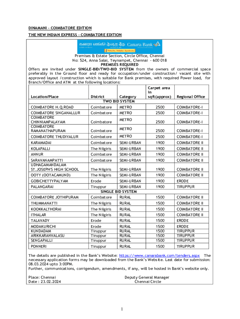 Get the free Offers are invited under SINGLE-BID/TWO-BID SYSTEM from the owners of commercial space