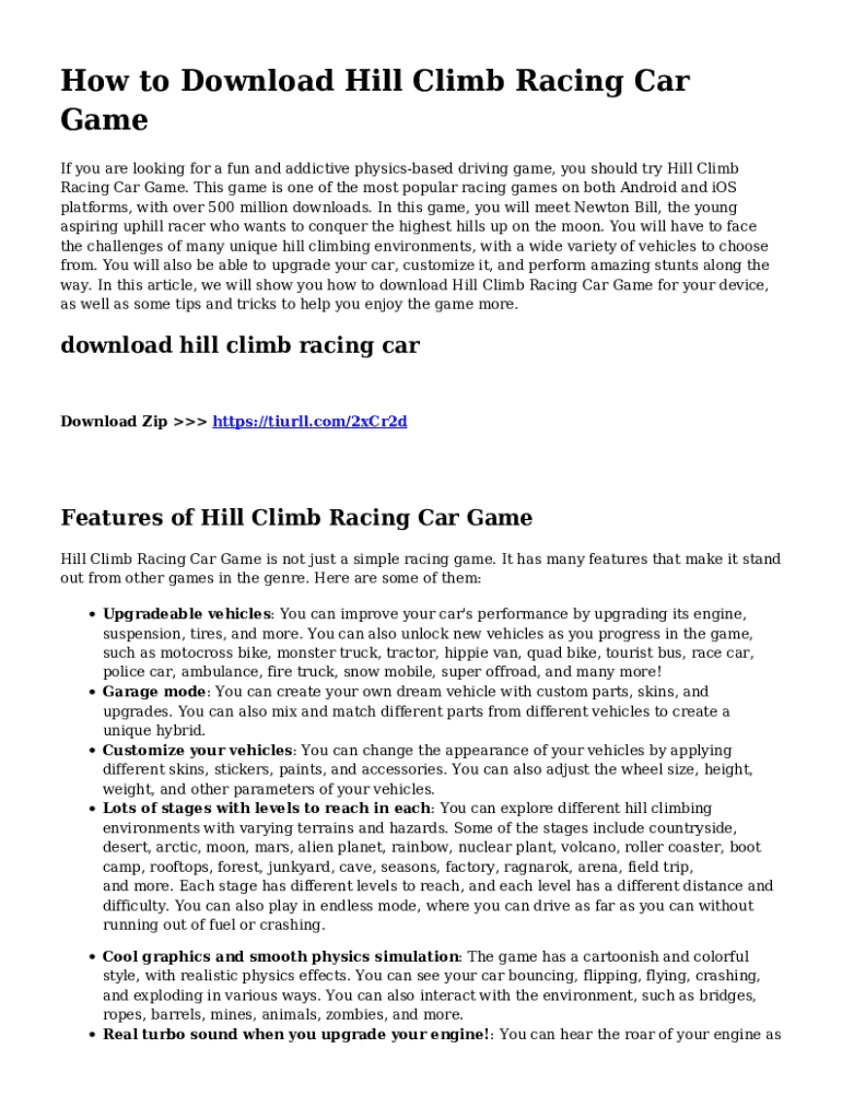 Get the free How to Download Hill Climb Racing Car Game