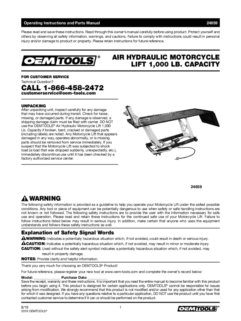 Operating Instructions and Parts Manual24859Please read and save these instructions. Read through this owners manual carefully before using product. Protect yourself and