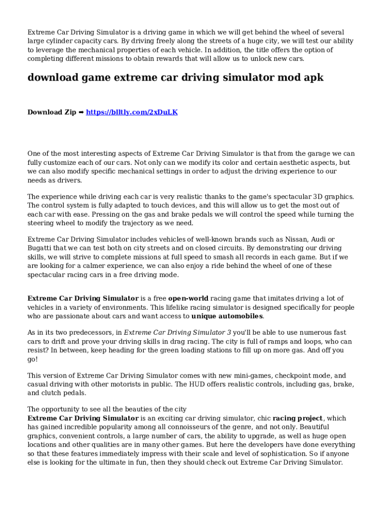 Fill out your extreme car driving simulator online with pdfFiller!