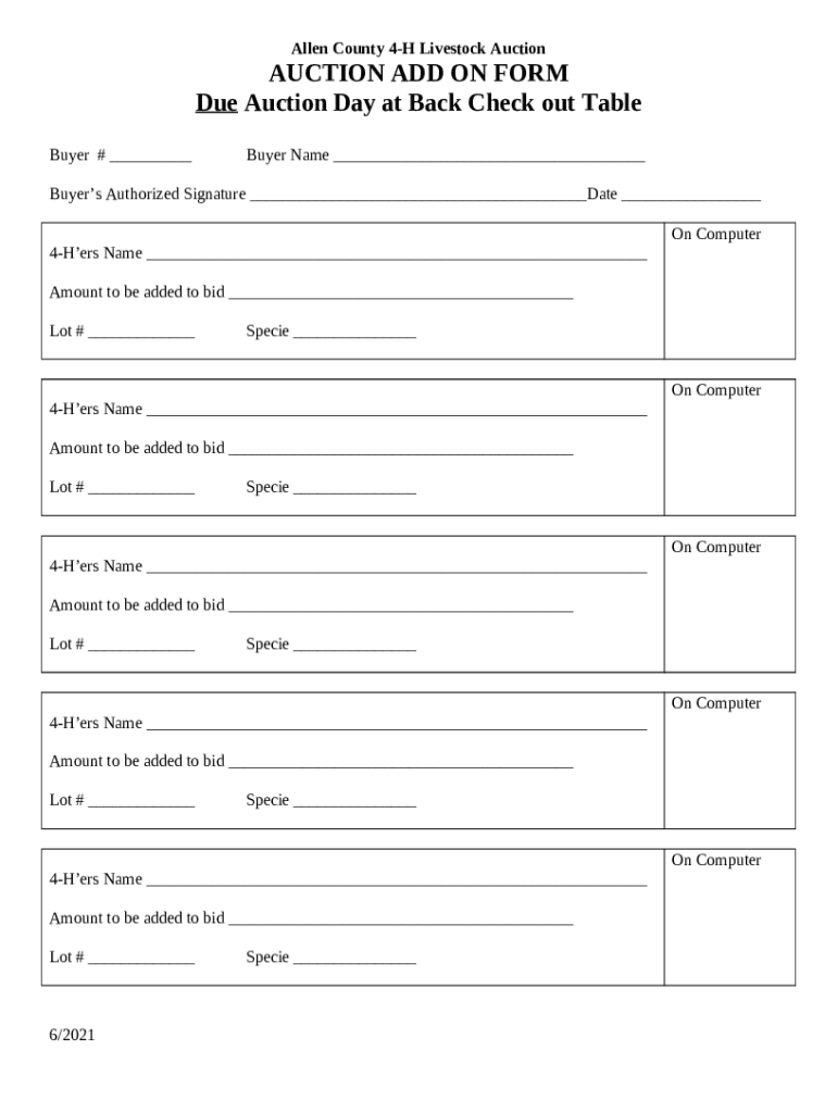 What is Allen County 4-H Virtual Livestock Auction - Fort Wayne - extension purdue Form?