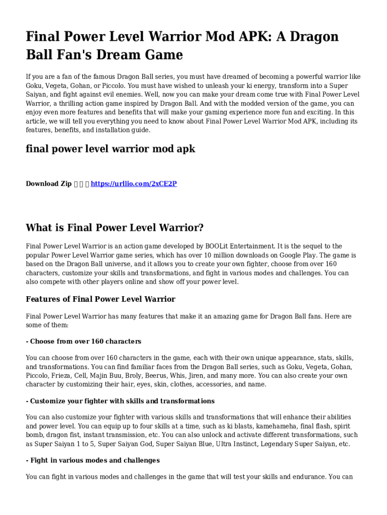 Final Power Level Warrior Mod APK: A Dragon Ball Fan\'s Dream Game If you are a fan of the famous Dragon Ball series, you must have dreamed of becoming a powerful warrior like Goku, Vegeta, Gohan,