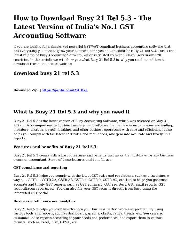 How to Download Busy 21 Rel 5.3 The Latest Version of India\'s No.1 GST Accounting Software If you are looking for a simple, yet powerful GST/VAT compliant business accounting software that has everything