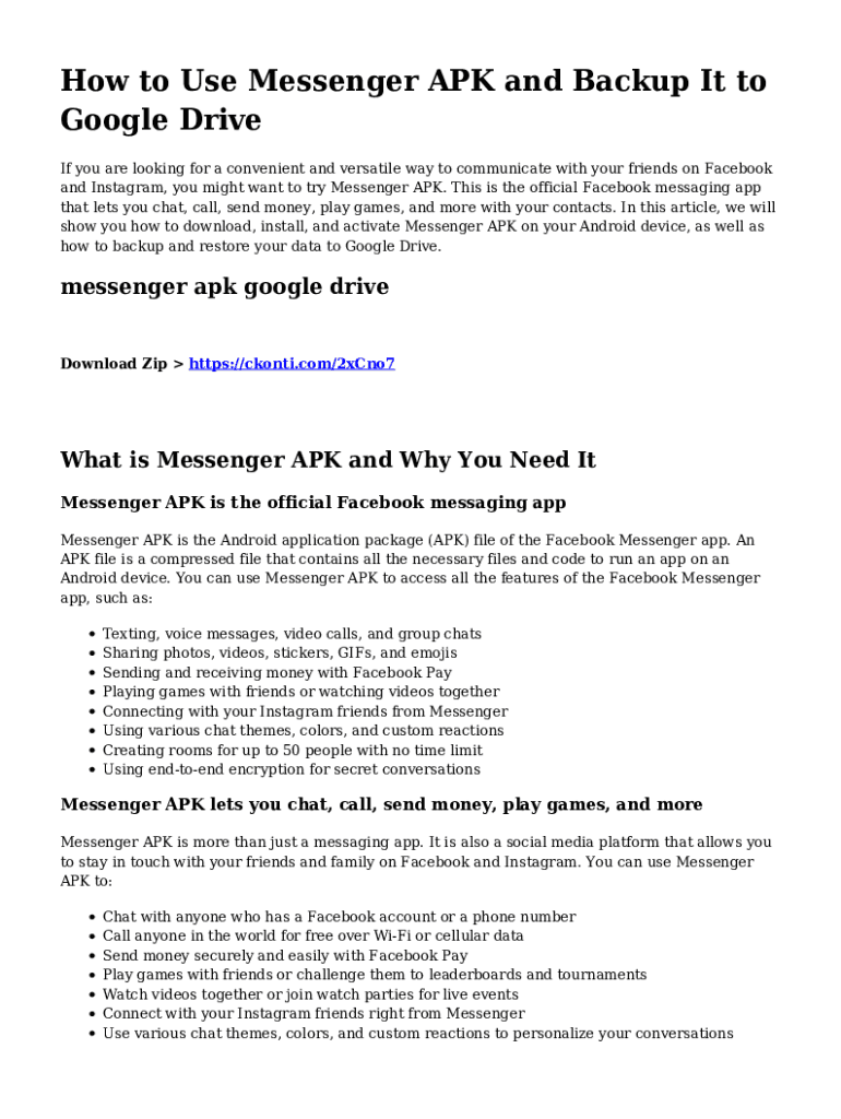 How to Use Messenger APK and Backup It to Google Drive If you are looking for a convenient and versatile way to communicate with your friends on Facebook and Instagram, you might want to try Messenger