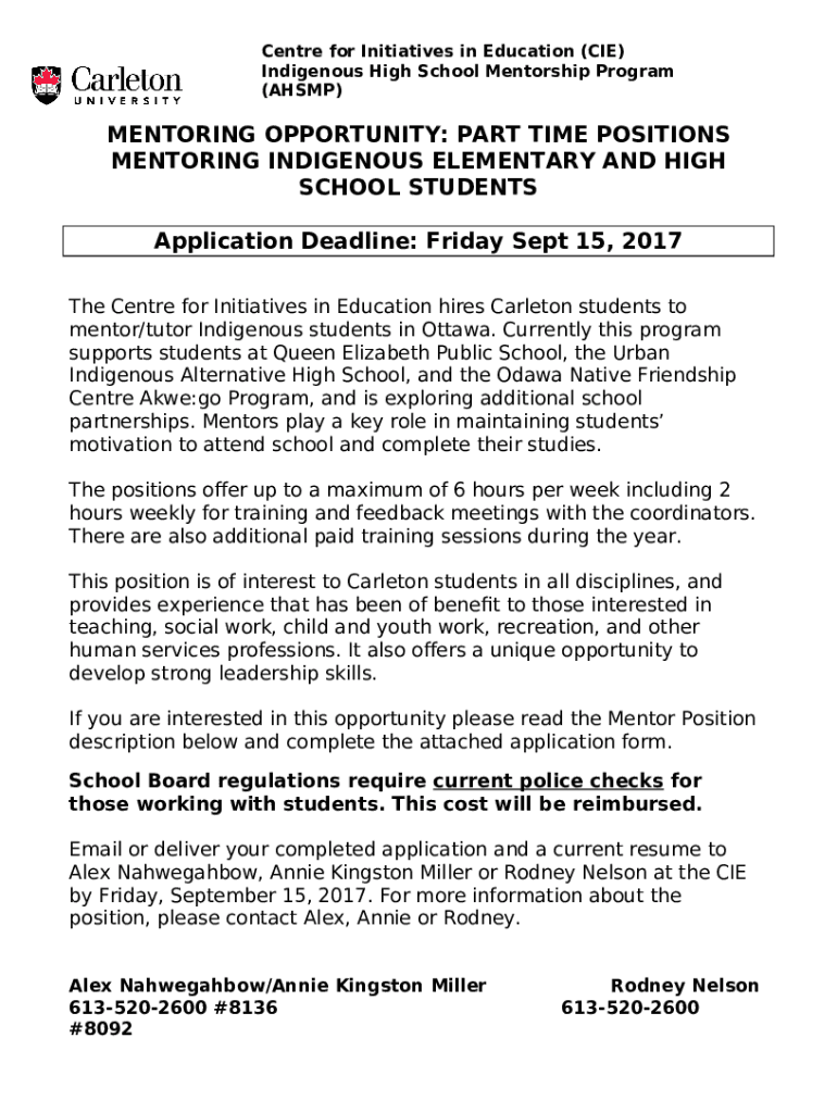 Instructions for the Application for Indigenous Mentorship/Tutoring Program form