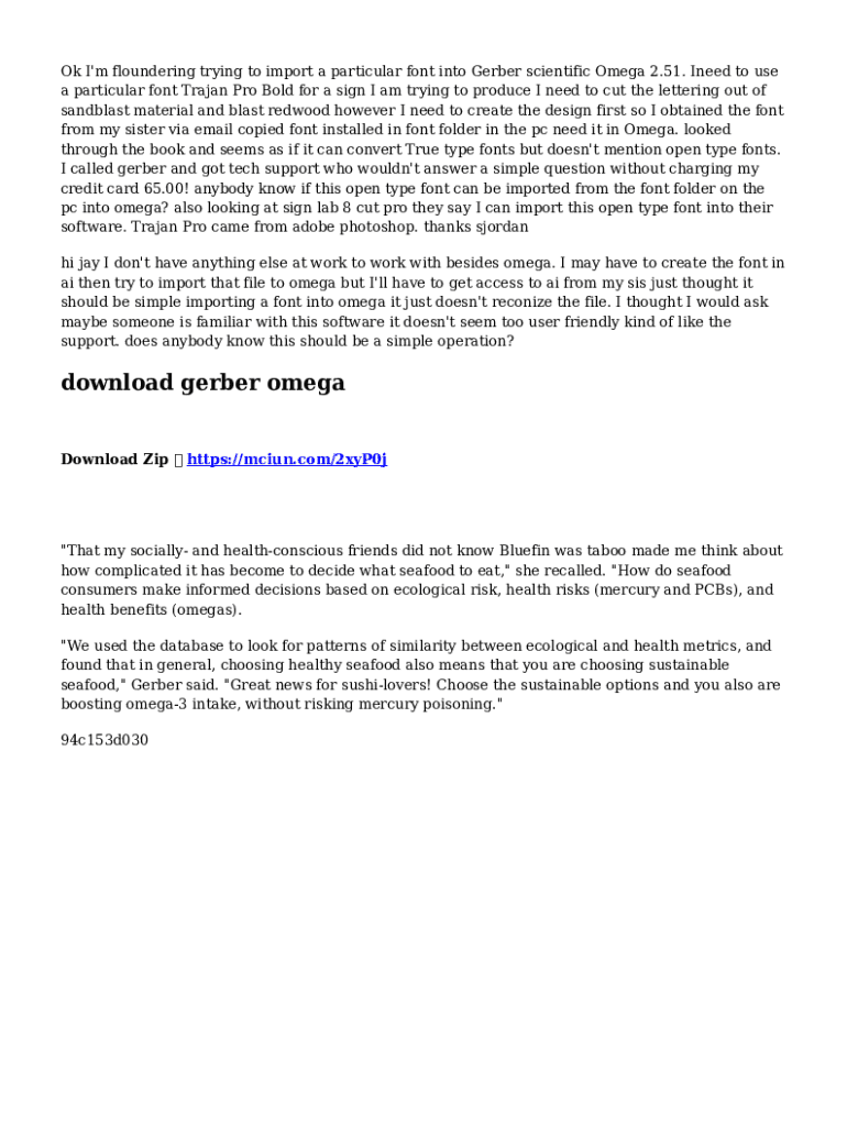 Get the free Gerber Omega importing open type fonts