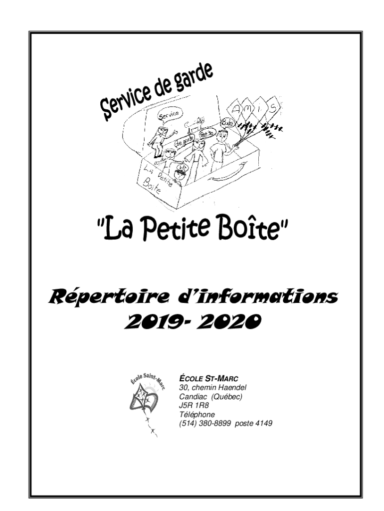 Rpertoire dinformations 2019 2020STMARC COLE30, chemin HaendelCandiac (Qubec) J5R1R8 Tlphone (514) 3808899 poste 4149TABLE DES MATIRES Renseignements gnraux3Valeurs du service de garde3Horaire4Admissibilit