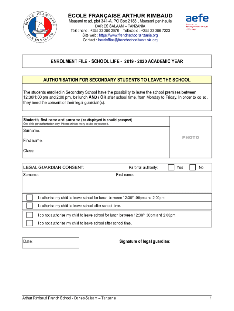 Typically, the parents or guardians of the student are required to file the arenrolmentfile schoollife form autorisation as part of the enrollment process.