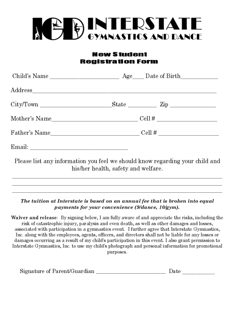 New Student Registration Orchids Name ___ Age___ Date of Birth___ Address___ City/Town ___State ___ Zip ___ Mothers Name___ Cell # ___ Fathers Name___ Cell # ___ Email: ___ Please list any information