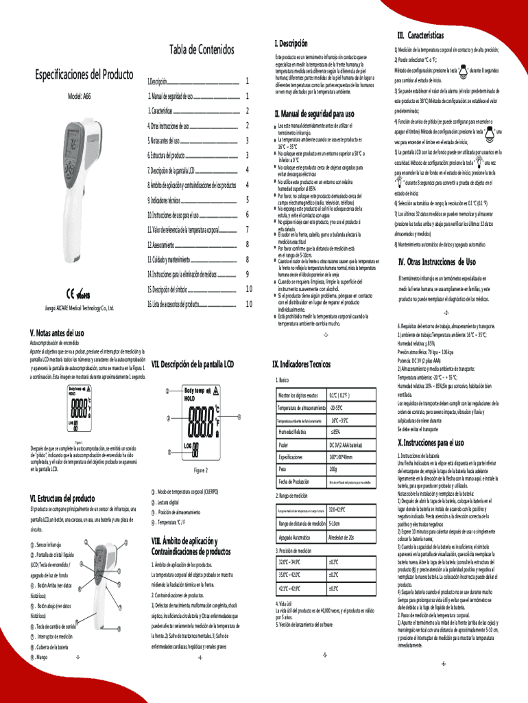 Model: A66Jiangxi AI CARE Medical Technology Co., Ltd.III. Characteristics. Descripcin1. Descripcin.....................................................................................................12.