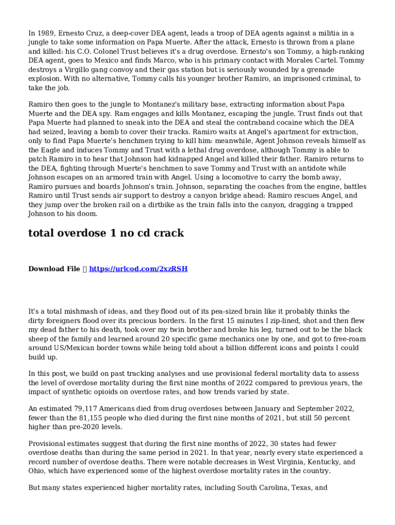 Total Overdose 1 No is not the form you're looking for?Search for another form here.