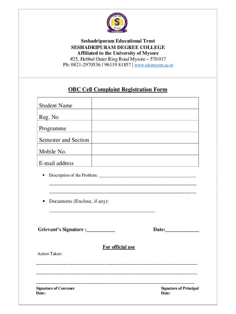 Equal Opportunity Cell Query is not the form you're looking for?Search for another form here.