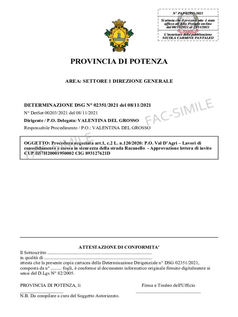 Ottieni il gratuito AREA: SETTORE 1 DIREZIONE GENERALE - trasparenza cloud publisys