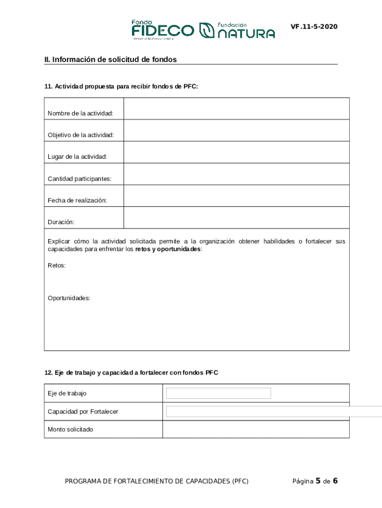 Instructions for the Programa para la Resiliencia de Sociedad Civil (RSA) ... form