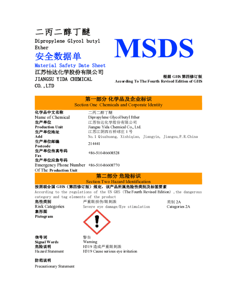 Name of ChemicalDipropylene Glycol butyl Overproduction Unit Jiangsu Aida Chemical Co., Ltd.