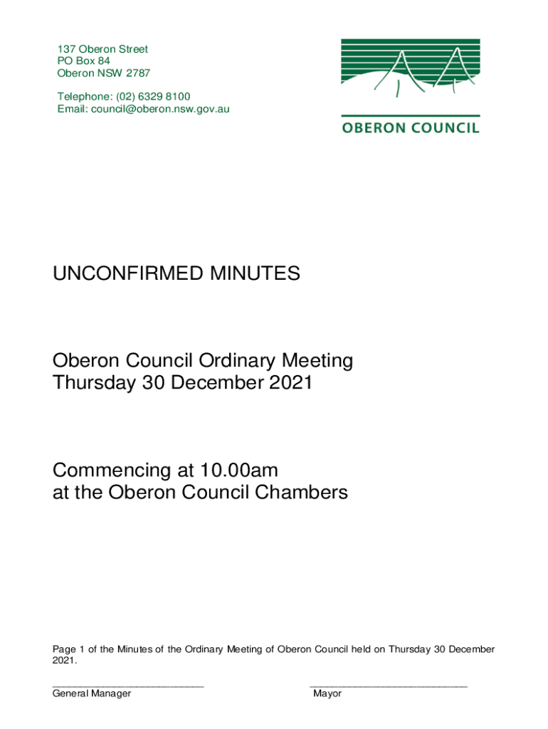 Email: council@oberon.nsw.gov.auUNCONFIRMED MINUTES Oberon Council Ordinary Meeting